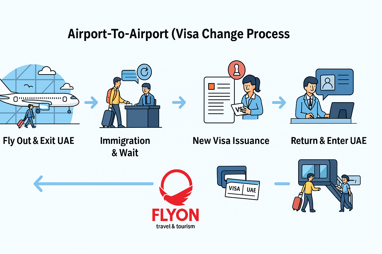 To get started, contact a reliable travel agency specializing in airport to airport visa change in abu dhabi, like FlyOn Travel and Tourism, to prepare the necessary documents, and to enjoy a hassle-free visa renewal experience.