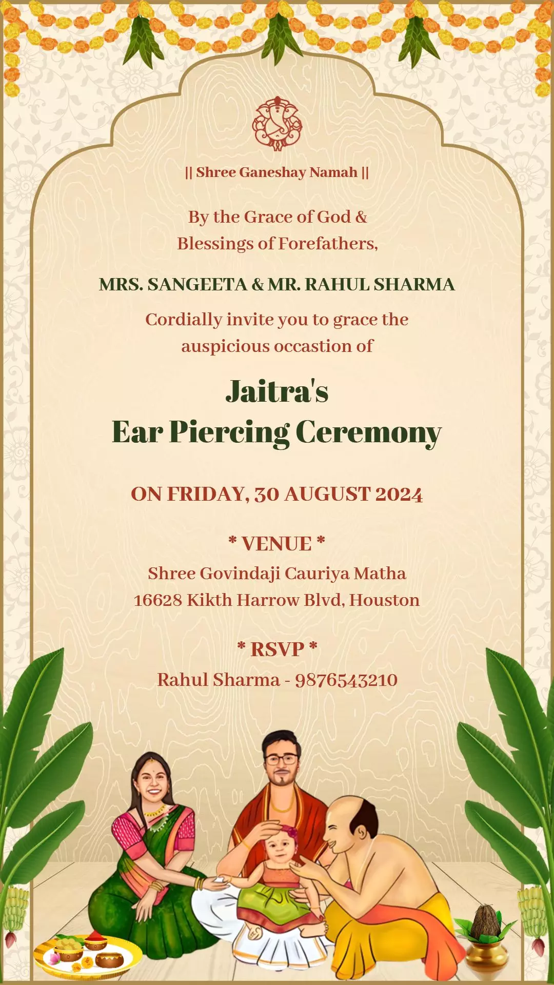 An ear-piercing ceremony is a special occasion that is filled with cultural significance, love, and blessings. Using free online tools to create a Tamil invitation can make the process more convenient, while still allowing you to design something that is meaningful and personal. Whether you’re planning a small intimate ceremony or a grand celebration, your invitation will set the tone for a beautiful event. Don’t forget to add some personal touches to make the invitation as unique as your family’s story!