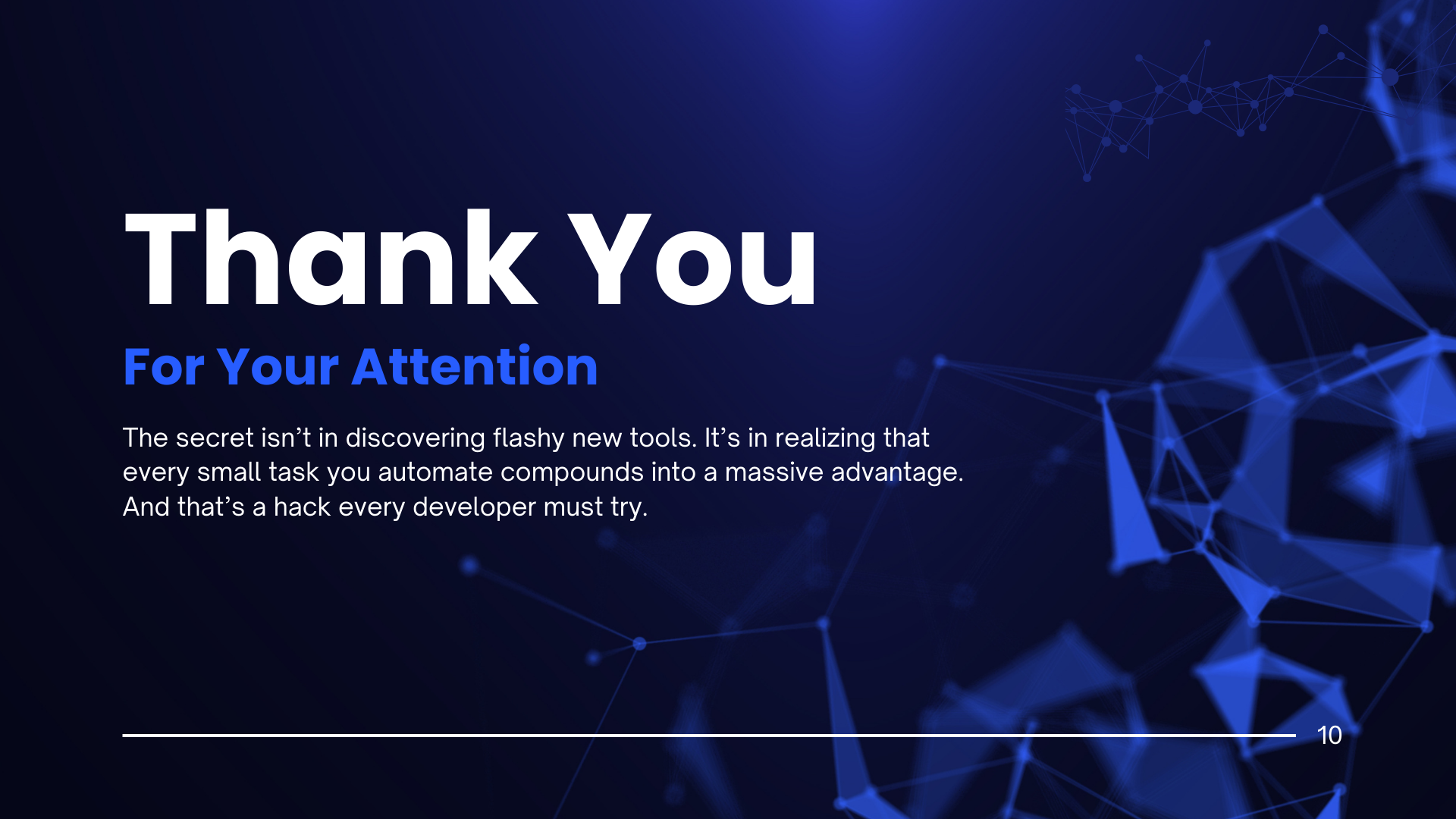 The secret isn’t in discovering flashy new tools. It’s in realizing that every small task you automate compounds into a massive advantage. And that’s a hack every developer must try.